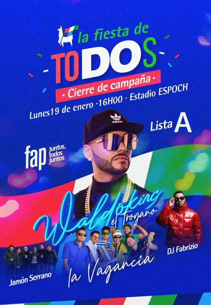 Desde las 16h00, el Estadio ESPOCH se llena de música, energía y unidad con la presentación de Waldokinc el Troyano, La Vagancia, Jamón Serrano y DJ Fabrizio.